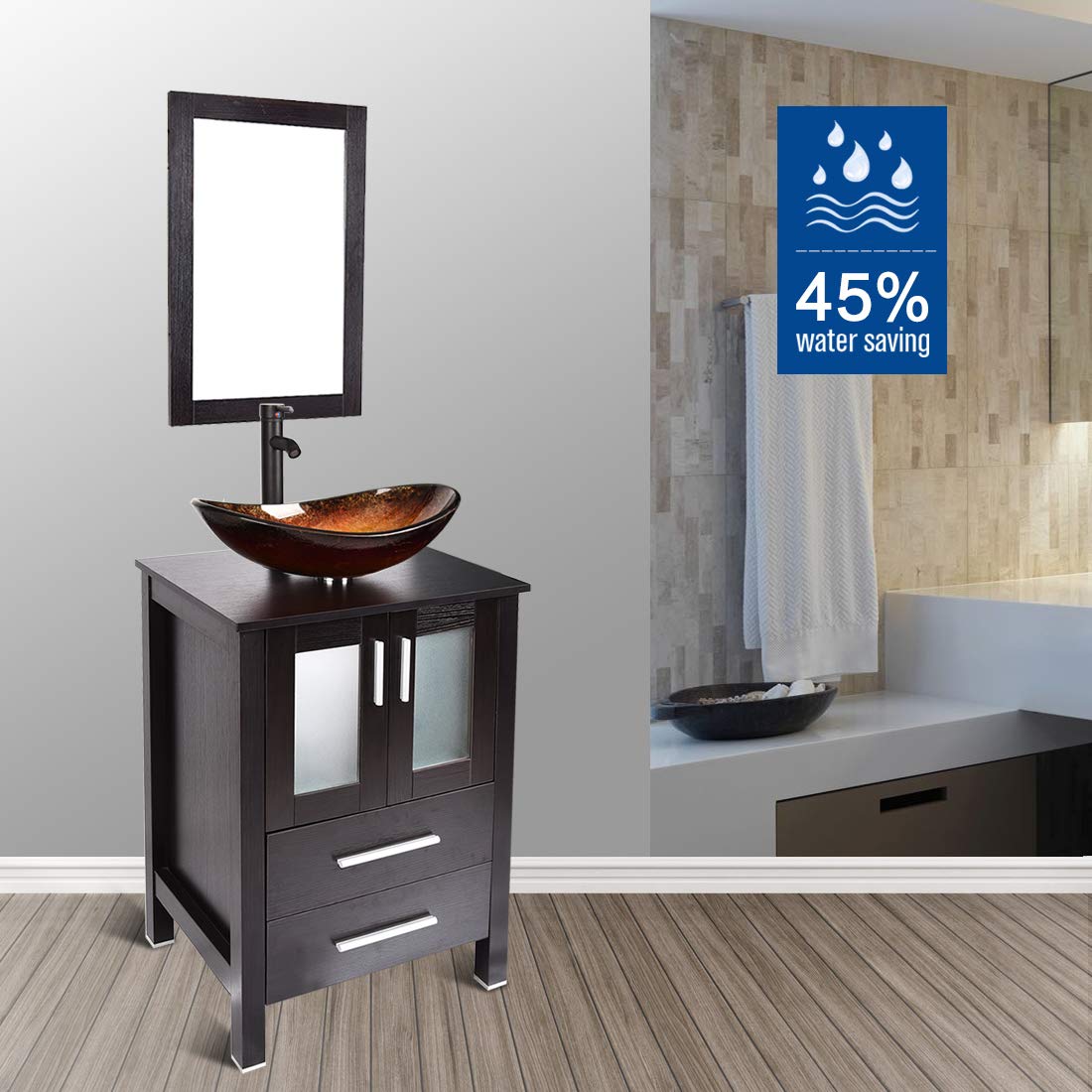 24 inch bathroom vanity with ceramic, stone and glass sink. Choose from a wide selection of great styles and finishes. This simple, modern light wood vanity would look airy and breezy in any bathroom—and at just 18 inches wide. This is your chance to make your bathroom a room you want to spend time in, and not just out of necessity.