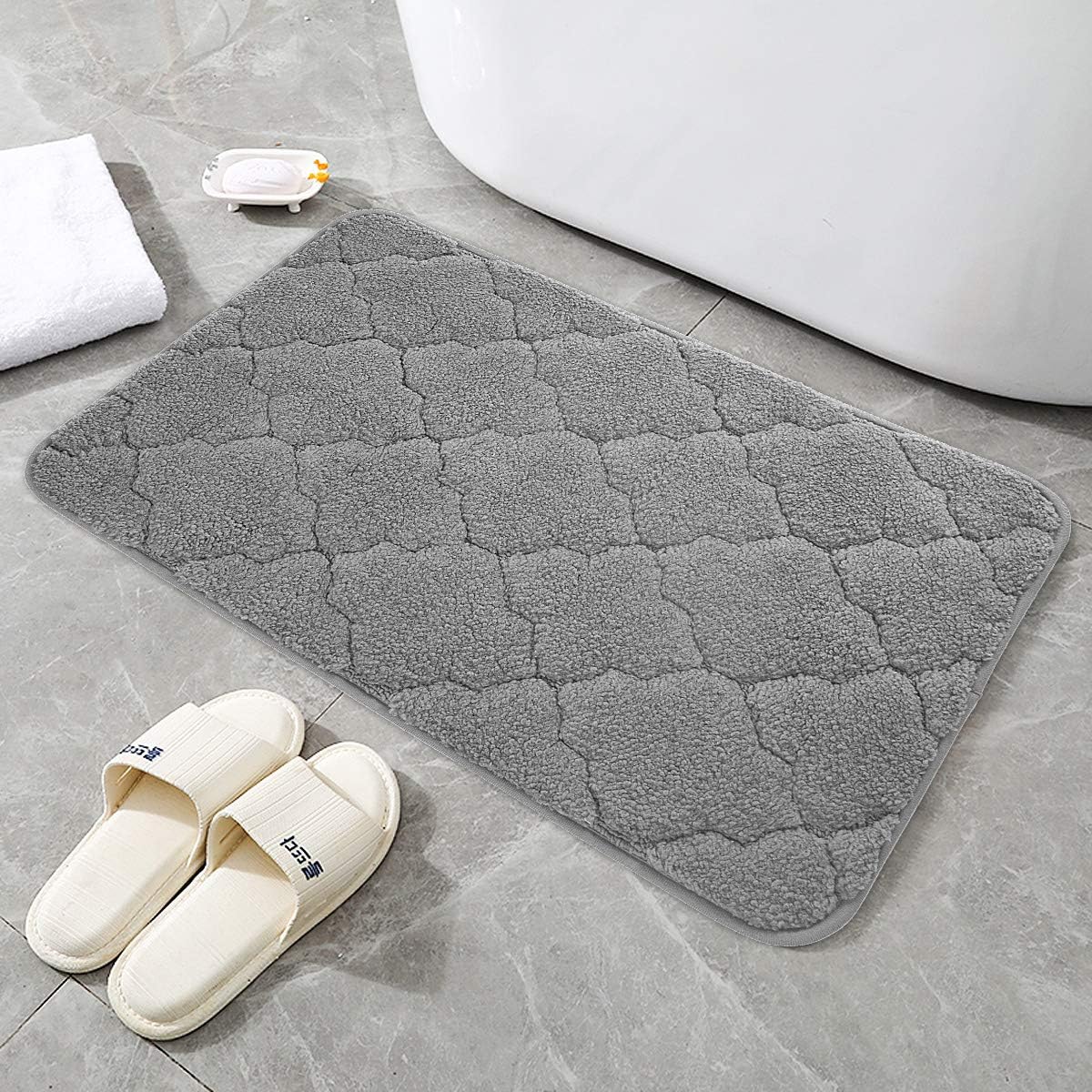 Luxury Grey Bath Mat Microfiber Non Slip Bath Rug With Super Soft Absorbent Dry Fast from m.media-amazon.com