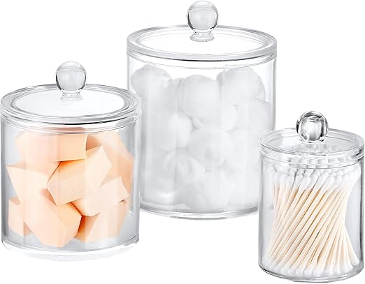 Amazon Com Apothecary Jars Bathroom Storage Organizer Cute Qtip Dispenser Holder Vanity Canister Jar Glass With Lid For Cotton Swabs Rounds Bath Salts Makeup Sponges Hair Accessories Bronze 2 Pack Home Kitchen from images-na.ssl-images-amazon.com