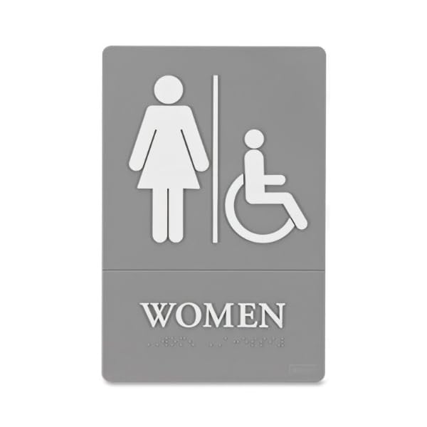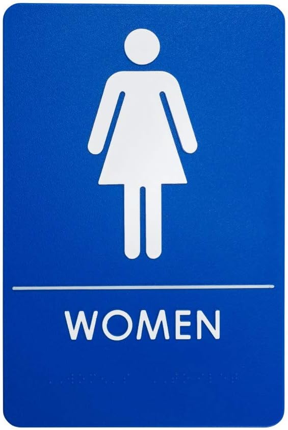 Women's bathroom sign 6 wide and 9 tall are usually mounted next to the bathroom door.